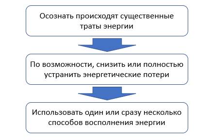 Но как, например, быть в ситуации, когда произошли существенные энергозатраты, и человек чувствует, что находится на грани переутомления. Для выхода из кризиса следует выполнять ряд несложных действий.