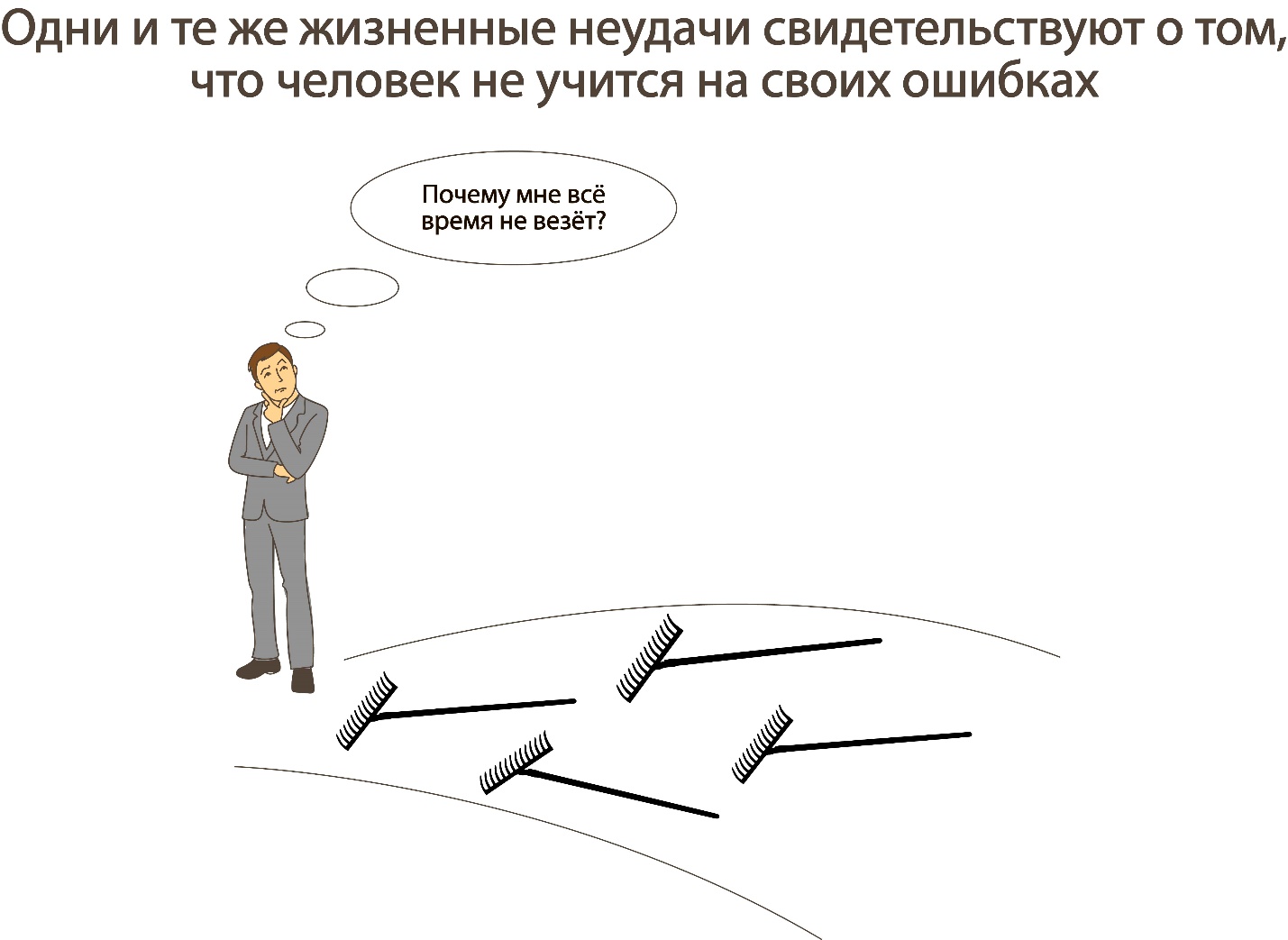 Когда какие-то негативные эпизоды раз за разом повторяются в жизни, это значит, что человек наступает на одни и те же грабли и не учится на своих ошибках. По сути, это одна и та же неудача, возникающая в разном контексте, при этом сложность проблемных ситуаций с каждым разом только нарастает.