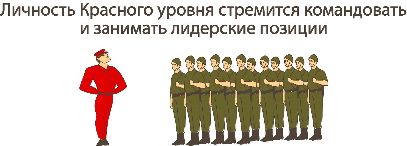 Ради победы и превосходства человек Красного уровня готов идти до конца. Он использует должностное положение, авторитет, власть, финансовое состояние или личные качества, чтобы добиться желаемого. Его девиз: «Будет так, как я хочу». Он берет на себя ответственность за результат, но в случае неуспеха перекладывает вину на других.