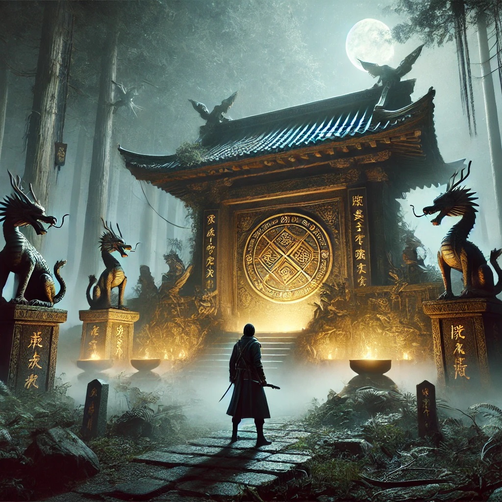 Когда последний дух исчез, мост восстановился, и перед Рэном открылись массивные врата, украшенные резьбой в виде дракона, обвивающего меч. Он подошёл ближе и осторожно толкнул их.