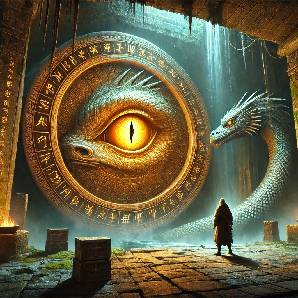 Его взгляд упал на ещё одну страницу книги. На ней было изображено нечто, называемое "Оком дракона", это был драгоценный камень, сверкающий внутри алтаря. В тексте утверждалось, что этот артефакт был ключом к печати и что только тот, кто обладает кровью хранителей, может использовать его.