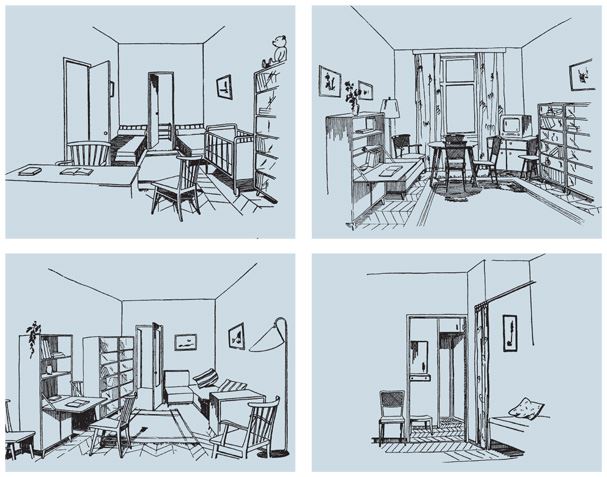 Но самым важным, конечно, было организовать пространство внутри квартир. Недостаточно было сократить высоту комнат до 2,7 метров и сделать совмещенные санузлы. Теснота не была проблемой для большинства новоселов, но нельзя было допустить, чтобы они тащили за собой привычки и скарб из бараков, подвалов и коммуналок. Поэтому жильцы въезжали в квартиры, уже оборудованные встроенной мебелью, а остальную они могли приобрести по каталогу, ознакомившись с образцовыми интерьерами, представленными в одном из домов микрорайона. В свободной продаже современная мебель еще отсутствовала, а традиционная в малогабаритные квартиры просто не помещалась.