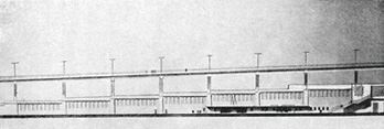 Поначалу мост хотели делать из стали (конструктор Юрий Дыховичный даже предлагал сварить его из остатков Дворца Советов), но потом – в целях экономии металла и уменьшения шума – остановились на сборном железобетоне. Технология предварительного напряжения позволила сделать конструкции тонкими и упругими – притом что размеры платформы оказались рекордными в московском метро. Она стала не только самой длинной (282 метра при средних 150), но и самой широкой: 17,6 метра – при максимуме в 12. Но в кои-то веки все эти рекордные размеры не означали пафоса и монументальности. Наоборот: все было легким, упругим, прозрачным, воздушным. Не было даже присущей обычному мосту симметрии: он пересек реку по косой, поэтому и арки, и опоры, и колонны оказались не на одном уровне. Не был он выровнен и в горизонтальной плоскости: разница отметок между бровкой Ленинских гор и пойменной зоной Лужников столь велика, что мост плавно наклонялся в их сторону, но все равно пассажиры из вестибюля не спускались (как обычно), а поднимались к поездам. Под мостом оставалось столько места, что в конце концов там был оборудован целый легкоатлетический манеж! А на противоположном берегу пассажиров принимал чудо-эскалатор, выполнявший фактически роль фуникулера.