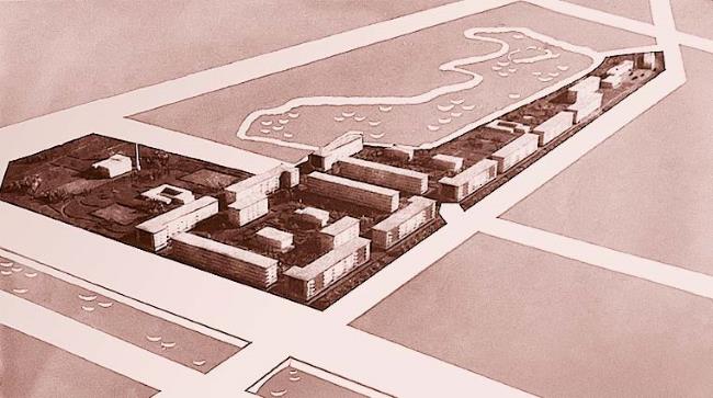 ➧Во-первых, новые кварталы проектировала та же мастерская Ленпроекта под руководством Евгения Левинсона и Игоря Фомина, что с середины 1930-х годов застраивала район Щемиловки. К середине 1950-х по обеим сторонам от продолжающей трассу Володарского моста Ивановской улицы и вдоль ближней к Неве стороны будущей улицы Седова уже стояли объединенные общим архитектурным решением (то есть практически типовым проектом) комплексно спроектированные кварталы. «Центральная часть новых кварталов решена единым значительным комплексом, в котором большую роль играет здание школы с площадками для игр. Такое размещение, с одной стороны, приближает школу к обслуживаемому кварталу и делает возможным подход к школе без перехода магистрали, а с другой – создает условия, при которых нет уличного шума, препятствующего школьным занятиям»[28]. Так Левинсон и Фомин описывали свой проект в 1936 году, на четверть века опережая важнейший принцип планировки микрорайона.