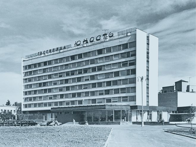 Крупные молодежные форумы организовывались в Москве вплоть до перестройки, но после завершения гостиницы «Россия» в 1966 году делегатов ответственных мероприятий предпочитали селить там. Однако свою роль в архитектуре «Юность» уже успела сыграть. Для сотен тысяч человек, проходивших мимо здания гостиницы на стадион «Лужники» и обратно, оно стало символом нового времени, выразившим дух «оттепели» не менее ярко, чем гостиница «Москва» – эстетику зрелого сталинизма. Контрастны не только стиль, но и программа двух гостиниц: если в «Москве» номера были иерархически ранжированы от восьмиметровых каморок до трехкомнатных люксов, то в «Юности» все номера были одной площади 12,78 метра – правда, 31 из них был рассчитан не на двух, а на трех человек. Интерьеры «Москвы» с малахитовыми колоннами, живописными плафонами и специально спроектированной дубовой мебелью должны были послужить пробой для внутреннего убранства иофановского Дворца Советов, а детали отделки, меблировка и оборудование «Юности» принципиально задумывались как типовые: в ноябре 1961 года Юрий Арндт сказал корреспондентам «Огонька», что таких же светильников, как в гостинице, до конца года будет выпущено 200 тысяч! Расстановка мебели в номерах, среди постояльцев которых были все же не только иностранцы, но и советские граждане, включая депутатов XXII съезда КПСС, показывала пример комфортного обустройства малогабаритных квартир: недаром проектирование гостиницы было поручено ЦНИЭП жилища Академии строительства и архитектуры.