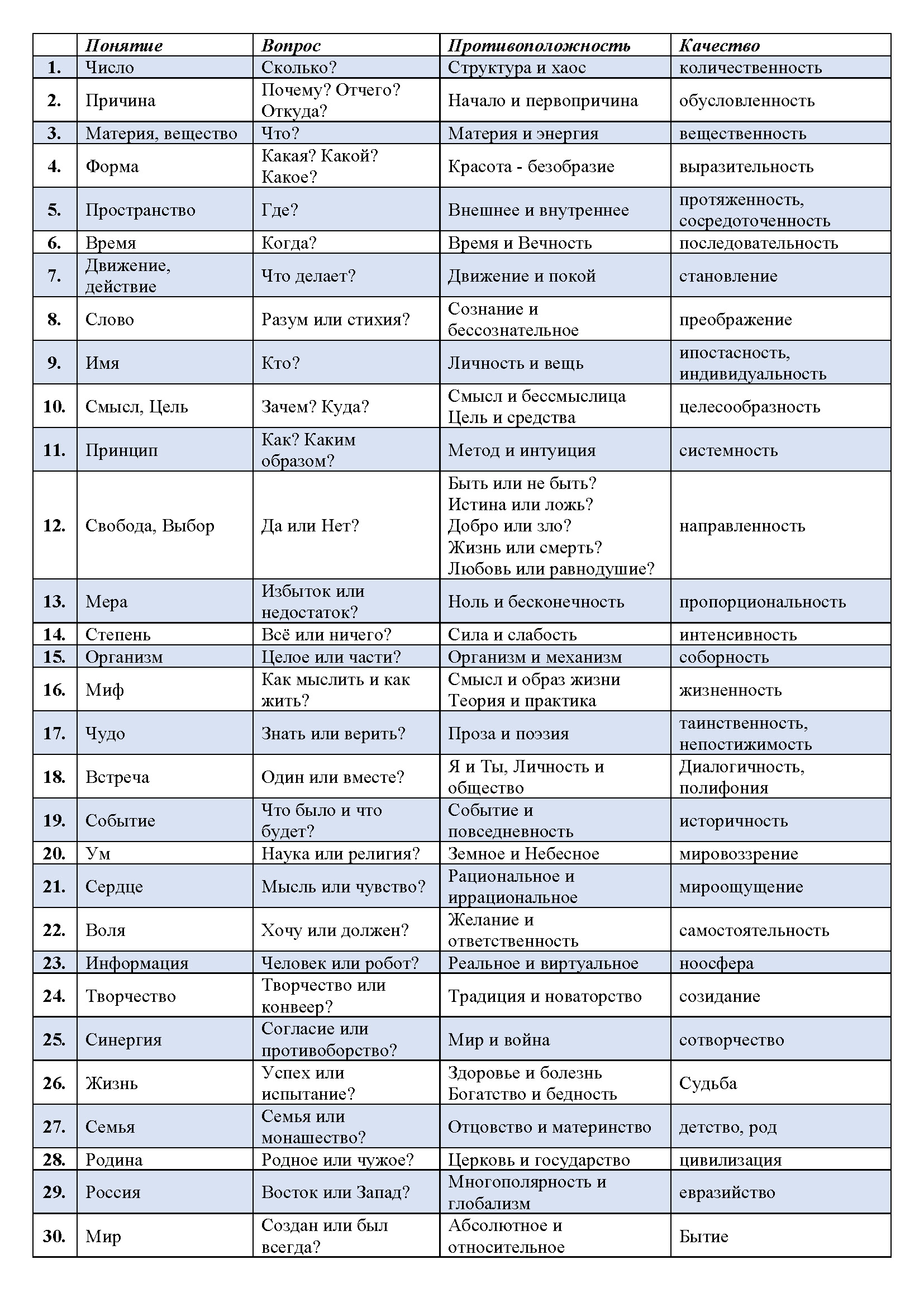 Великий философ Алексей Лосев говорил, что мыслить – значит задавать вопросы и искать на них ответы. Давайте рассмотрим, какие есть вопросы в нашем языке и с какими большими понятиями они связаны.