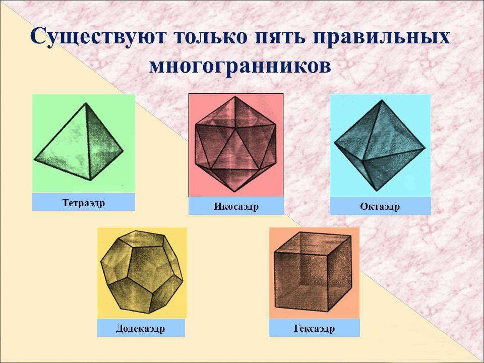 Сколько всего правильных многогранников и какие они? А сколько органов чувств у человека и какие они?