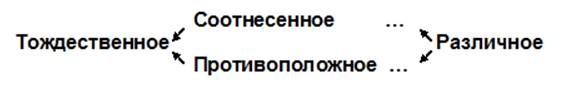 В древности не случайно считалось, что познание связано с операцией «сравнение», позволяющей выявлять исходные начала бытия, которые Аристотель называл видами «противолежания». У Аристотеля их четыре: «противоречащее, противоположное, соотнесенное, лишенность и обладание.