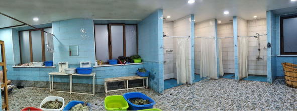 Парилки расположены параллельно друг другу, обе в рабочем состоянии, то есть нагреты. Вместимость, предположительно, до двадцати человек, которые могут расположиться свободно. Больше входит, когда на всех трех ступенях сидят.