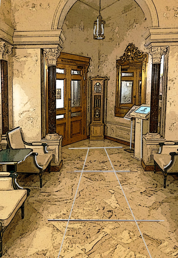 В предбаннике в первые годы работы заведения была установлена консоль для регистрации посетителей.