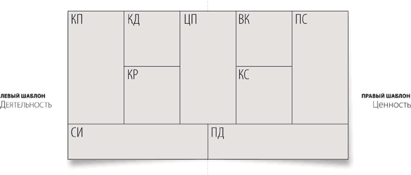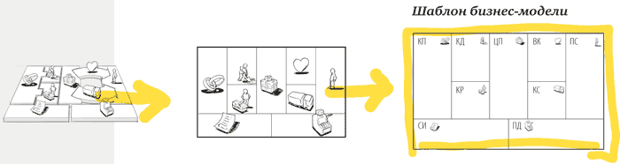 Этот инструмент напоминает набросок художника – с заранее нанесенной схемой 9 структурных блоков, – который позволит описать картину новой или уже существующей бизнес-модели.
