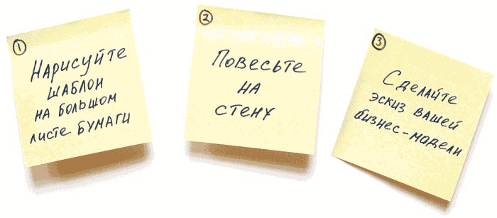 Шаблон бизнес-модели лучше распечатать как можно большего формата, так чтобы сразу много людей могли работать с бизнес-моделью с помощью стикеров или маркеров. Этот инструмент способствует пониманию и обсуждению, стимулирует творчество и помогает в анализе.
