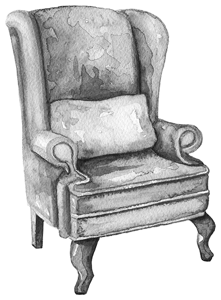 В центре гостиной стояли круглый стол со стульями, кожаный диван, два кресла и какой-то огромный старинный шкаф со стёклами, весь в резных деревянных завитушках.