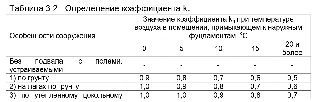 где kh – коэффициент, учитывающий влияние теплового режима помещения. Коэффициент kh можно определить по таблице 3.2 настоящего пособия.