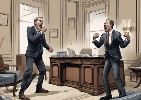 Президент в ярости опять хотел кинуть чем-то, и под руку попалась ручка. Но вместо броска, он рванул в сторону иностранного гостя и, казалось, задушить его хотел. Градов пытался успокоить, держал его в прямом смысле слова. Но президент даже ничего внятного не сказал, а посол встал, забрал кейс, оставил документы и, улыбнувшись, покинул кабинет, сказав спокойно: «Еще увидимся». Градов и Жириновский молча сидели в кабинете наедине со злосчастной бумажкой. У обоих были мысли в голове, но разные.