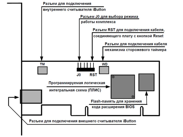 – подключаем считыватель iButton к внешнему разъему TM платы;