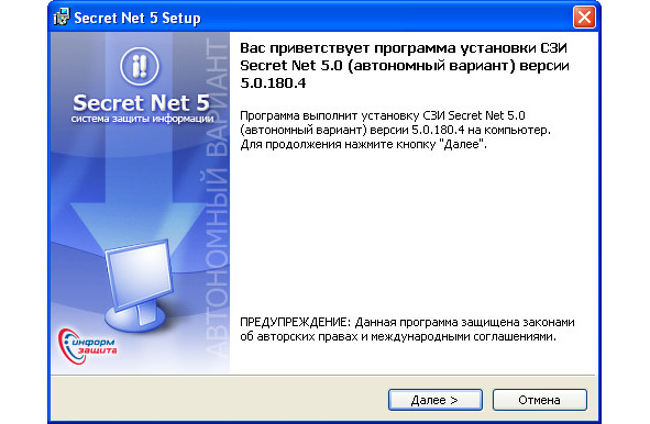 Установка СЗИ «Secret Net 5.0 (автономный вариант)»