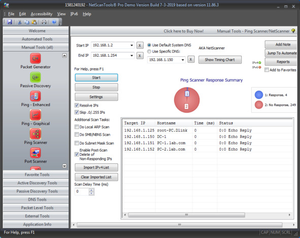 Определить адреса включенных компьютеров в сети при помощи утилиты NetScanTools (рисунок 1.7):