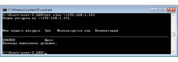 Листинг 5 – Список совместно используемых ресурсов удаленного компьютера