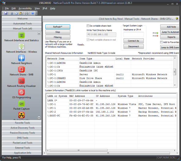 Воспользуемся NetScanTools, чтобы получить имена NetBIOS (рисунок 1.3).