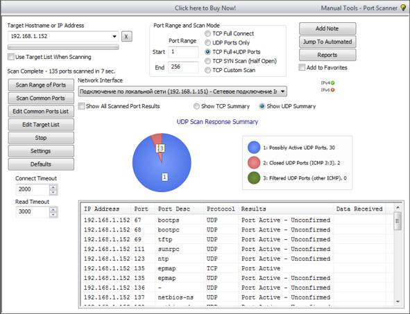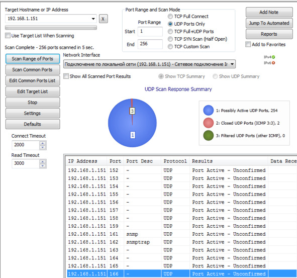 Рисунок 1.12 – Результаты сканирования UDP-портов