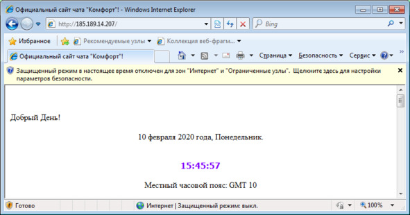 Согласно варианту задания, необходимо разрешить программе Internet Explorer доступ в Internet, за исключением одного сервера. При проведении работы будем использовать сервер с IP-адресом 185.189.14.207. Зайдем на сайт (рисунок.2.12).