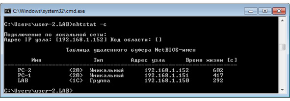 При помощи утилиты nbtstat получим таблицу имен NetBIOS (листинг 1).