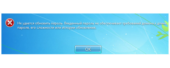 При попытке изменить пароль получено сообщение об ошибке, потому что пароль содержит в себе имя пользователя для входа (рисунок 3.11).