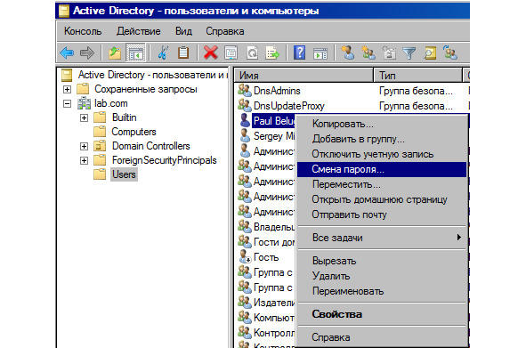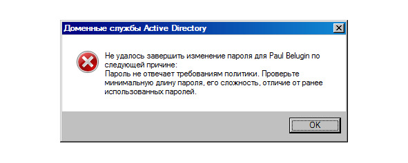 Проверим сможет ли администратор на контролере домена установить пароль «PAUL_*%351» (рисунки 3.12).
