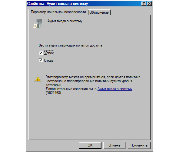 Два раза нажмем на параметр групповой политики Аудит входа в систему. Устанавливаем флажки для успешных и неудачных попыток доступа (рисунок 4.3).