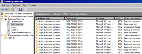 Пройдем по пути: Просмотр событий (Локальный) -Журналы Windows-Безопасность (рисунок 4.5).