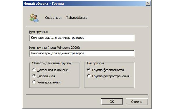 Создадим группу «Компьютеры для администраторов» (рисунок 5.1).