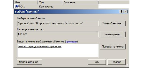 Сделаем так, чтобы компьютером PC-1 в домене могу управлять только данный пользователь (рисунок 3.8).