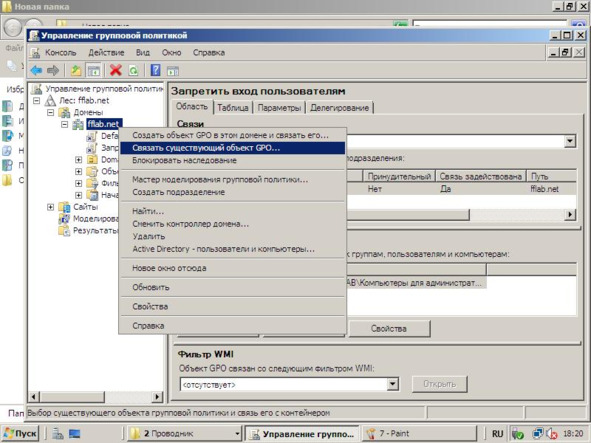 Рисунок 5.8 – Привязка объекта GPO к домену