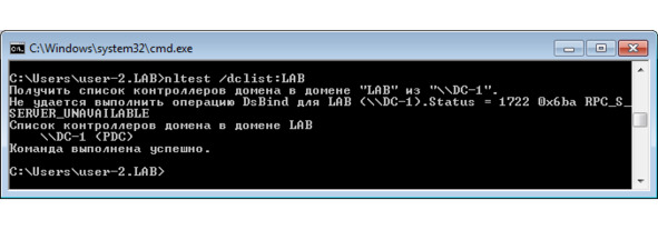 Для определения списка контроллеров домена воспользуемся утилитой nltest (листинг 3).