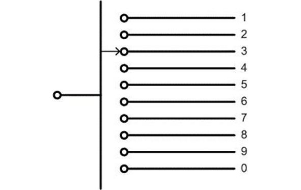Строились на шаговых искателях электромеханического типа, когда в зависимости от числа поступивших импульсов подвижный контакт подключается к одному из десяти подвижных контактов.