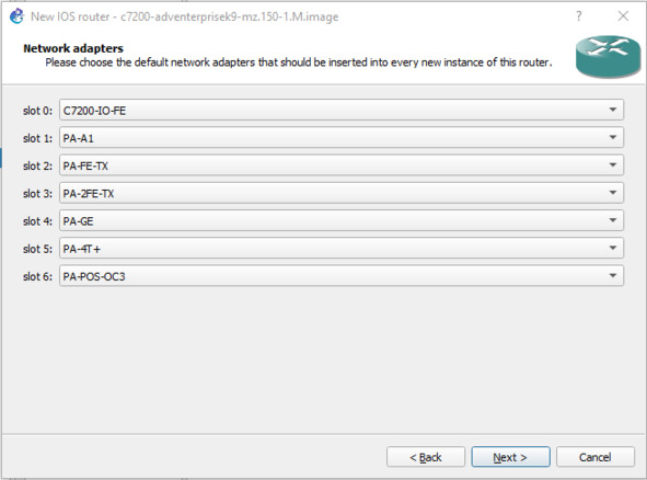 Далее необходимо выбрать сетевые адаптеры по умолчанию, которые будут с каждым новым созданным на рабочем поле роутером.