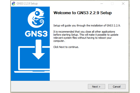 Установка GNS3 производится с помощью специального установщика. После запуска установки, пользователь увидит приветственное окно (рсиунок).