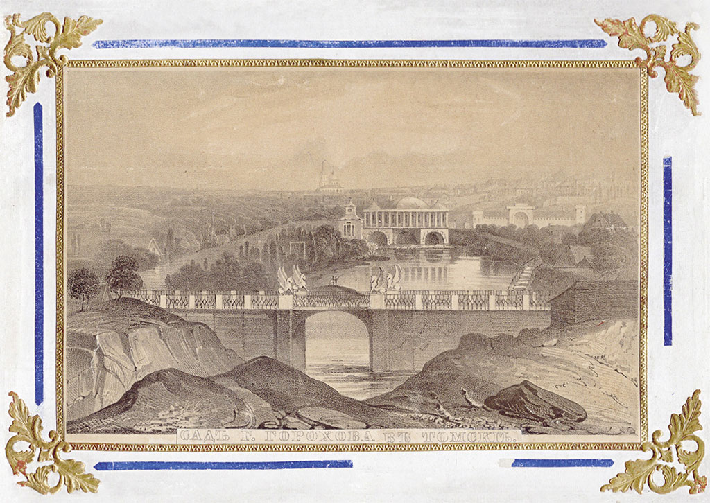 Томск. Вид сада Философа Горохова. Литография 1840-х. ТОКМ