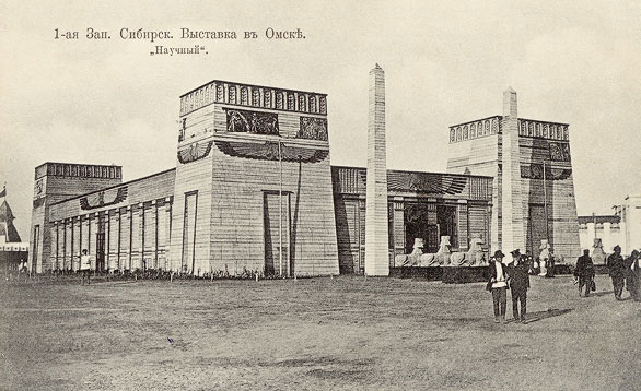 На протяжении 1910-х гг. под влиянием идей областничества и эстетики модерна велись активные поиски «сибирского стиля». Известные мастера тех лет (Андрей Лангер, Товий Фишель, Викентий Оржешко) использовали образы или орнаментальные мотивы, отсылавшие к местной природе и культуре. Летом 1911 г. в Омске открылась Первая Западно-Сибирская сельскохозяйственная, лесная и торгово-промышленная выставка – масштабная презентация новейших достижений региона. Для сибирских архитекторов и их коллег, приглашенных из Европейской России, эта выставка стала плацдармом для реализации самых смелых фантазий. Концепция экспозиционного пространства разрабатывалась под руководством талантливого красноярского зодчего Леонида Чернышева. Обширная территория – 27 десятин (около 29,5 га) – была застроена разнообразными сооружениями, выполненными из традиционного материала – дерева. Монументальный главный павильон был решен в стиле модерн, научный павильон достоверно воспроизводил древнеегипетский храм со сфинксами и обелисками, а машинный павильон напоминал синтез средневекового замка с юрточными жилищами коренных народов Сибири. Программа строительства включала среди прочего театр в мавританском стиле, павильон винодельни барона Штейнгеля в виде пещерного грота и павильон Переселенческой лесной организации, который представлял собой огромный ствол березы со входом-дуплом. На одной из площадей выставки возвышалась копия Эйфелевой башни, собранная ни много ни мало из эмалированных тазов и ведер фирмы «Калашников и сыновья». Омская выставка 1911 г. продемонстрировала незаурядные способности местных архитекторов и инженеров, что было отмечено прессой, однако ее художественный плюрализм не повлиял на формирование единого «сибирского стиля» (наподобие национального романтизма в Финляндии).
