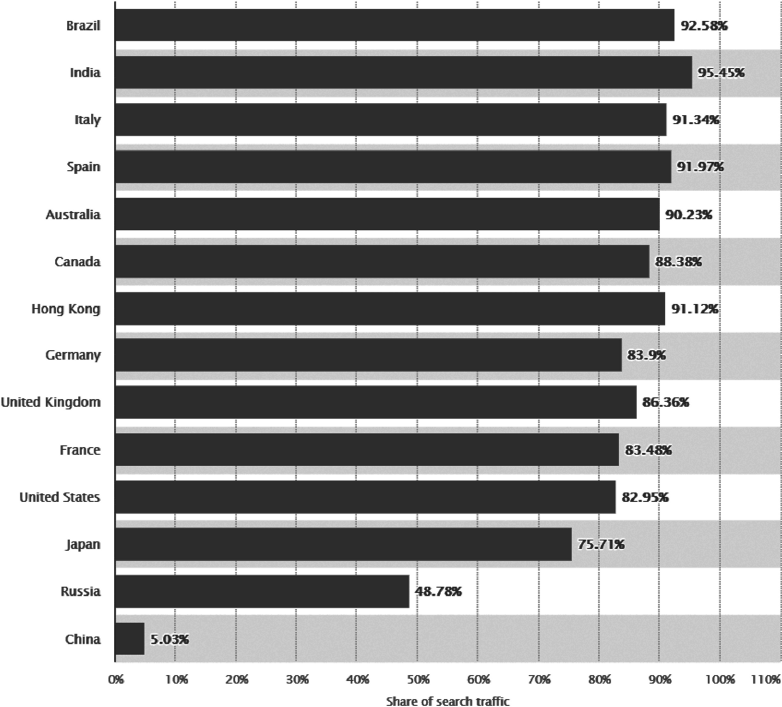 Везде главенствует Google, хоть Bing и набирает обороты – 10,51 %. Да, есть исключения, такие как Россия и Китай – в последнем преобладает Baidu. Но в масштабах международного бизнеса вы в первую очередь будете работать с Google.