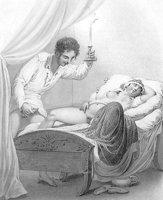 Когда движением свободнымВлеклись мы по твоим следам,Ослабу нравам благородным,Аннета волю даст слезам;Мы кротости девиц навыкнувИ к телу жаркому приникнув,Судьбину тщимся отвратить;Глядишь, Аннет на все готоваИ ножки раздвигает сноваИ тщится хуй в себя вложить!VI