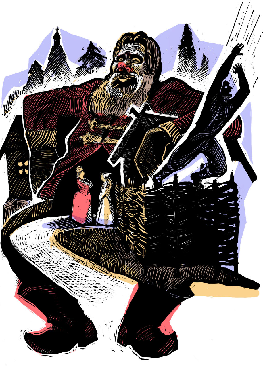 Ну да пожди, старуха, горю пособлю; здесь почти управился и вас повеселю; так и быть, видно, хоть мочь не в мочь, а приходится добрым людям помочь!» Выпил еще стакан вина и старухе велел поднести; потом встал, со старыми молодыми раскланялся и к новым на новый пир отправился.