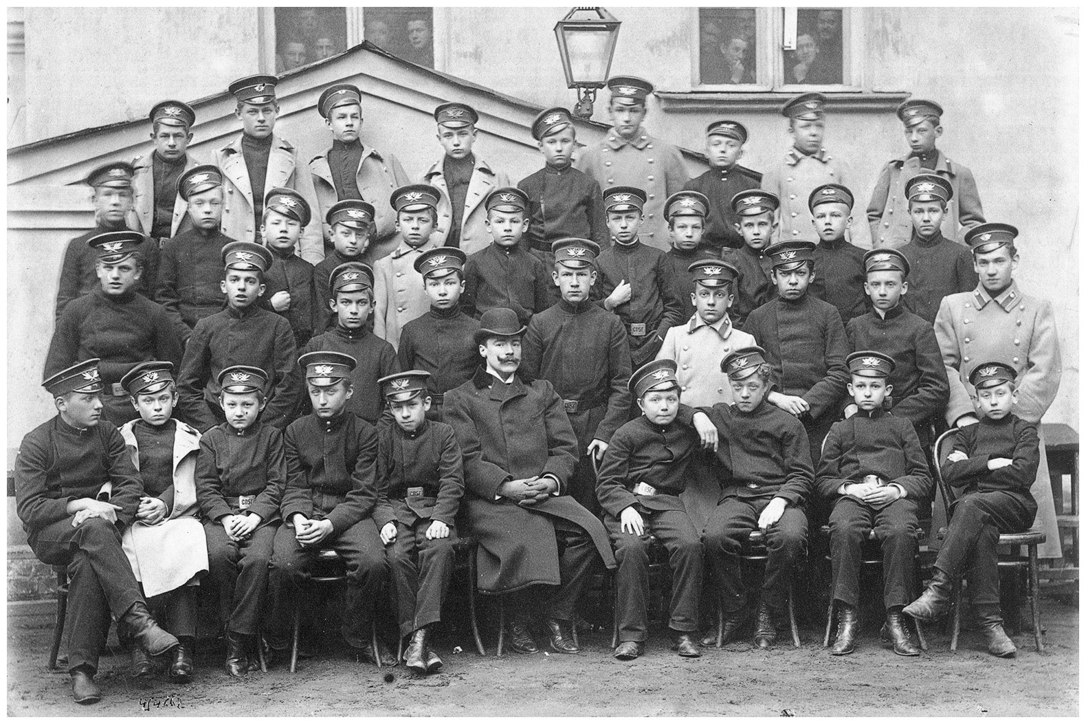 Гимназисты. 1900-е годы. Во второй части «Арсеньева» герой без объяснения причин бросает гимназию