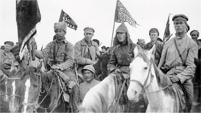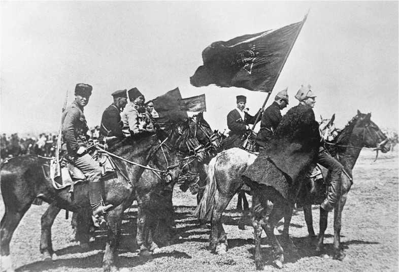 Бойцы Первой Конной армии на митинге по случаю вручения им Почётного революционного Красного Знамени ВЦИК, начало 1920-х годов[120]