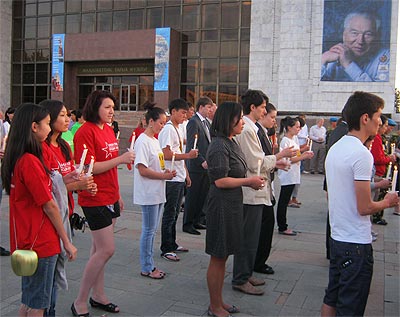 Поначалу число участников едва достигало полусотни, но постепенно оно увеличилось в разы. Раздали людям свечки, зажгли их. Постояли молча.
