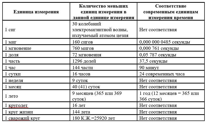 Таблица 1 – Славяно-Арийская система измерений пространства
