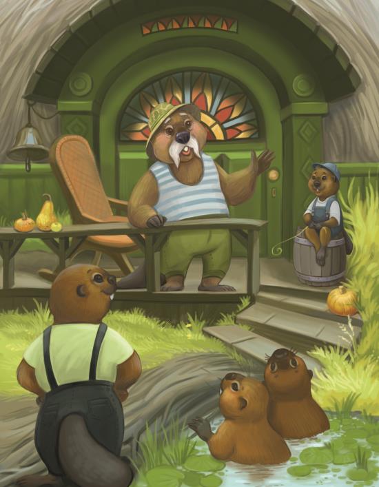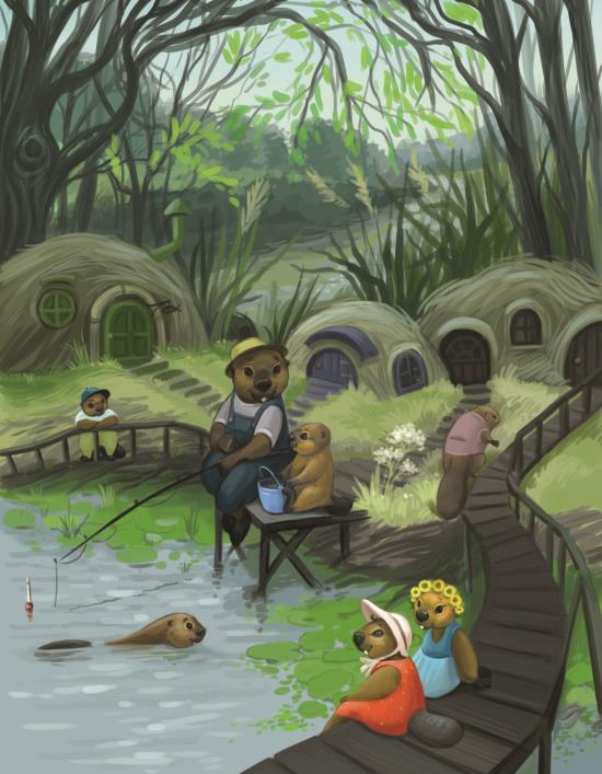 Семьи бобров жили дружно, часто встречались, праздничные дни проводили сообща, а когда у кого-то из друзей возникала трудная и тяжёлая работа, то приходили на помощь. В такие дни взрослые работали вместе, а их молодые бобрята находились рядом: знакомились, помогали папам и мамам, играли в разные игры, мальчики выбирали девочек, а девочки выбирали мальчиков.