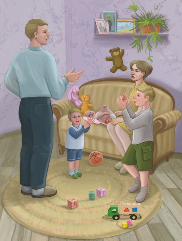 – Спасибо, сыночек, за заботу, но ты осенью пойдёшь в первый класс, поэтому надо много читать. Иди и почитай сказки, а потом расскажешь мне, Сашеньке и Поленьке.