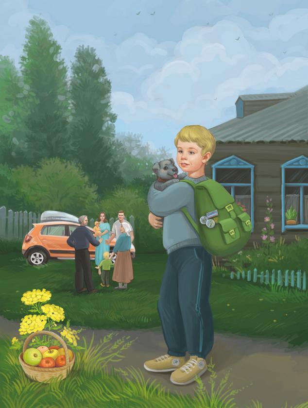 Всю дорогу мальчик смотрел в окно автомобиля, терпеливо молчал и только один раз спросил у папы о дедушкиной деревне.